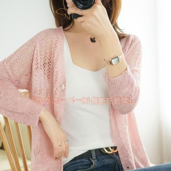 ニットカーディガン 薄手 カーディガン 透かし編み レディース コーディガン サマーカーディガン 冷房対策 ボタン付き ニットコーディガン 春秋