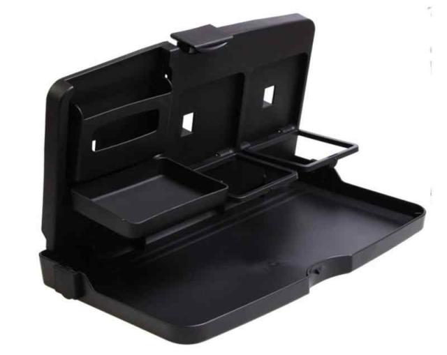 場所を取らない折りたたみマルチテーブルです、後部座席のヘッドレストに引っ掛けて広げるだけで あっという間に簡易テーブルの出来上がり