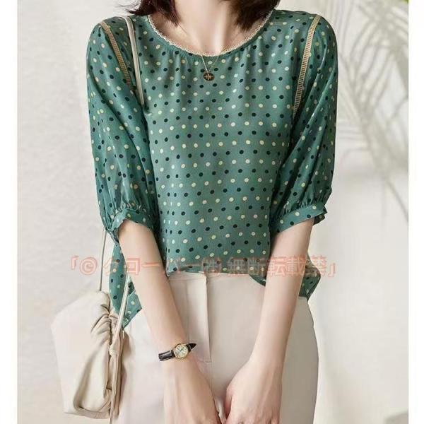 【連携キーワード】:ブラウス レディース 40代 春夏 オシャレブラウス シフォンブラウス きれいめドット柄ブラウス 半袖トップス パフスリーブ 通勤OL ゆったりtシャツ 30代50代