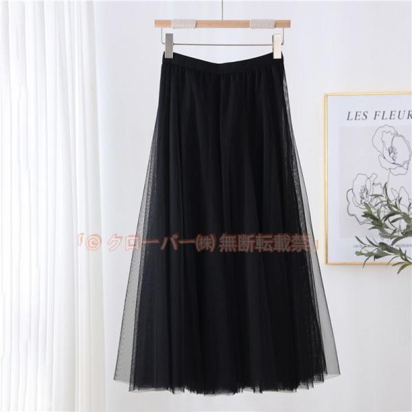 夏スカート ロングスカート カジュアル レトロ 上品 フェミニン シンプル 着回し 着痩せ フレア ウエストゴム 柔らか生地 チュール 透け感 ボリューム お出かけ