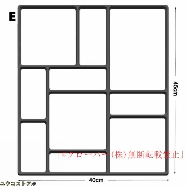 庭の歩道を敷石のように型取れるPP素材の金型石畳を作るためには、通常“石”が必要となりますが、本商品は石は不要で型抜き感覚で製作することができます。均等に分けられたオリジナルな型は、失敗しにくく簡単にDIY可能!さらに、使いまわし可能でどんなに広い場所でも繰り返しお使い頂けます。【こんな場所に】住宅の地面のエントランス 、 石畳調のロード駐車場 、 玄関前 、 テラス 、 庭づくり 、花壇必要な道具はコテ?セメントのみ!カラーセメント やガラス、貝殻などアレンジ1つで想像以上のお庭が作れます?※コンクリートが完全に固まらないうちに型を外してください●一部の商品は輸入品ですので、入荷時期により、若干デザインや仕様が変わる場合がございます。●サイズは手作り測量しましたので、サイズが1-3CM誤差の場合がございます。予めご了承くださいませ。●輸入品のため、小傷?擦れ?汚れ?変形?ヘコミ等などが付いている場合があります。●当商品を使用した事による他商品の破損?故障につきましては一切の責任を負いかねます。●細かな問題