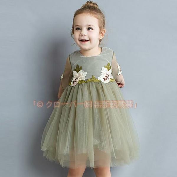 キッズドレス 160サイズ 130サイズ グリーン ホワイト 可愛い ワンピース クローバー株式会社 子ども 刺繍 女の子 発表会 フォーマルドレス 結婚式 ピアノ 送料無料 即納 当日配送