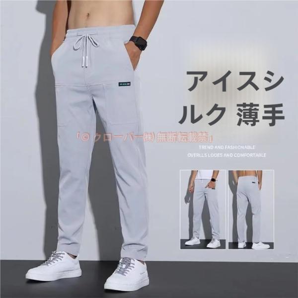 メンズチノパンツ アイスシルク メンズ ストレッチパンツ メンズ アイスシルク レギンスアイスシルク クローバー株式会社 カジュアルパンツ メンズ 夏 薄手 トレンド