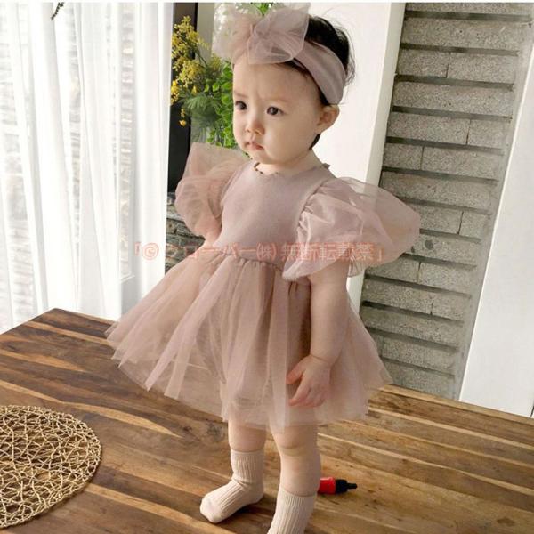 ベビー ワンピース ドレス ロンパース 女の子 半袖 秋 セレモニードレス チュール ヘアバンド チュールドレス ベビードレス ベビーロンパース ベビー服 赤ちゃん かわいいハーフ バースデー 衣装 結婚式 1