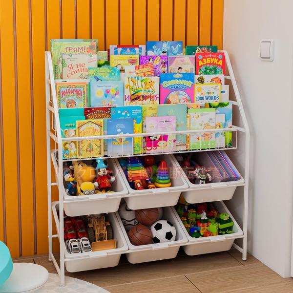 ◇ 家具 便利 安全 かわいい ホワイト 簡単組立 絵本棚 収納棚 絵本収納 シンプル カゴ付き トレイ付き 子ども おもちゃ オモチャ 安い オモチャ箱 アイデア 子供部屋 ケース 子供 玩具 白 シェルフ キッズ