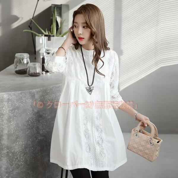 レディース ブラウス レースチュニック チュニック 花柄 刺繍 レース クローバー株式会社 白 丸首 春 夏 ワンピース 大人 可愛い 洋服 袖コンシャス ゆったり