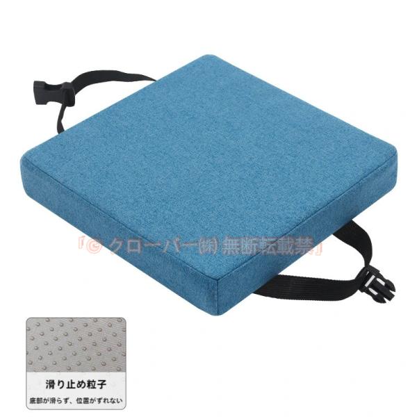 ?【ベルトと滑り止め付き、2重固定】クッションにワンタッチベルトも付き、学習椅子やダイニングチェアにしっかり固定。また、裏面に滑り止めも加工、立ったり座ったりした際のズレ落ち防止、2重固定なので、お子様は安心してご利用いただけます。