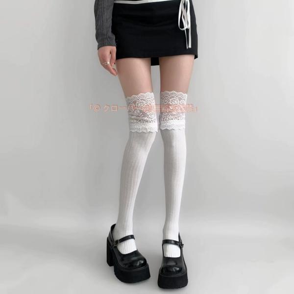 サイハイソックス レースドッキング ハイソックス 大人可愛い 膝上丈 レッグウェア 蒸れない 通学ルームソックス 韓国風