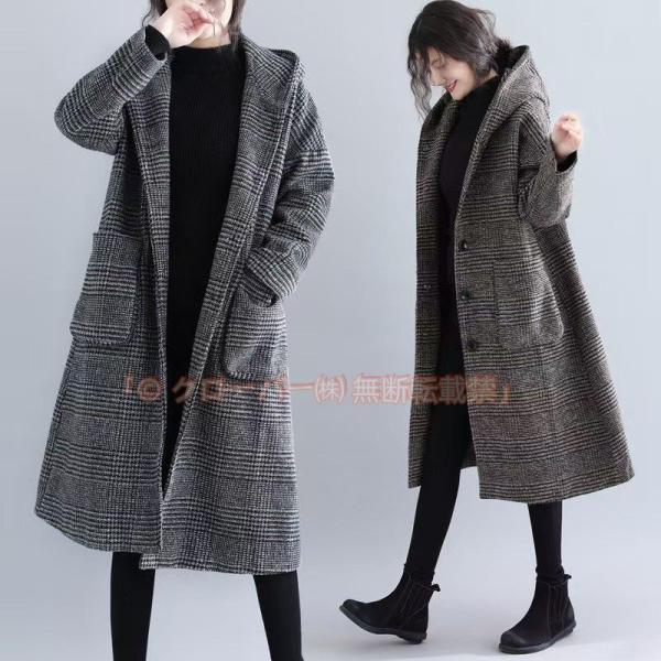 チェスターコート レディース アウター フード付き ロングコート 大きいサイズ 千鳥柄 クローバー株式会社 大人 秋冬 40代 30代 20代