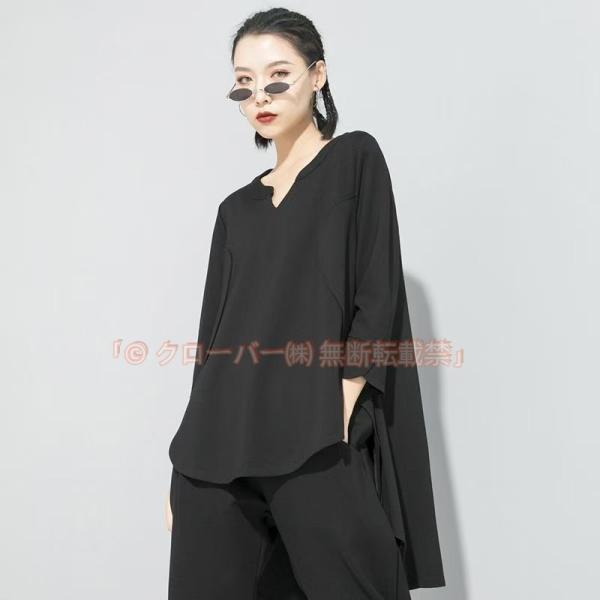 トップス レディース シャツ モード系 長袖 個性的 Tシャツ クローバー株式会社 アシンメトリー ストリートファッション 黒 カジュアル きれいめ ルーズ 春秋