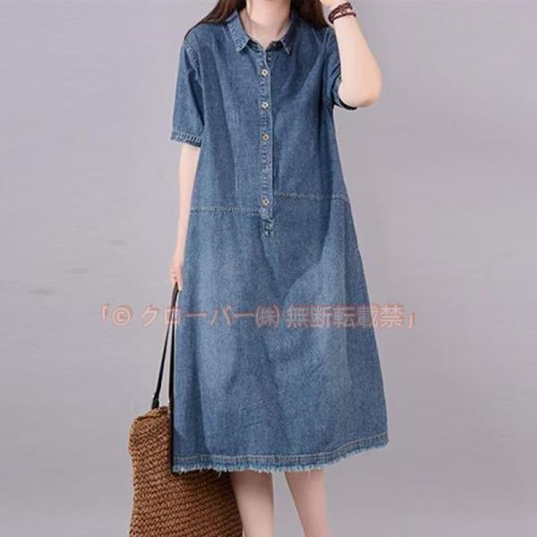 ワンピース レディース マキシ丈 デニムワンピース ロングワンピース 半袖 大きいサイズ クローバー株式会社 着痩せ 体型カバー 通勤 OL お出かけ 春夏