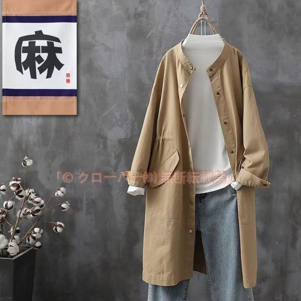 スタンドカラーコート スプリングコート レディース 春 ロングコート ライトブルゾン ス 羽織 ノーカラー 大きいサイズ ライトアウター ゆったり 森ガール