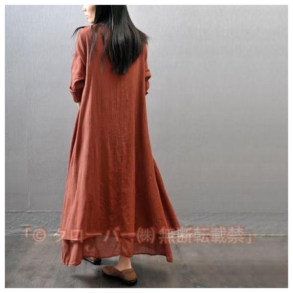 ワンピース コットンリネン ロングワンピース 綿麻混 長袖 半袖 ロング丈ワンピース クローバー株式会社 体型カバー 大きいサイズ 春 秋 ワンピ 着痩せ