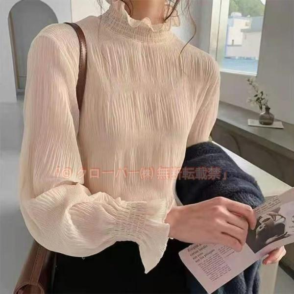 シアーブラウス 長袖 シフォンシャツ トップス インナー シャツブラウス レディース クローバー株式会社 プチハイネック フリル トップス