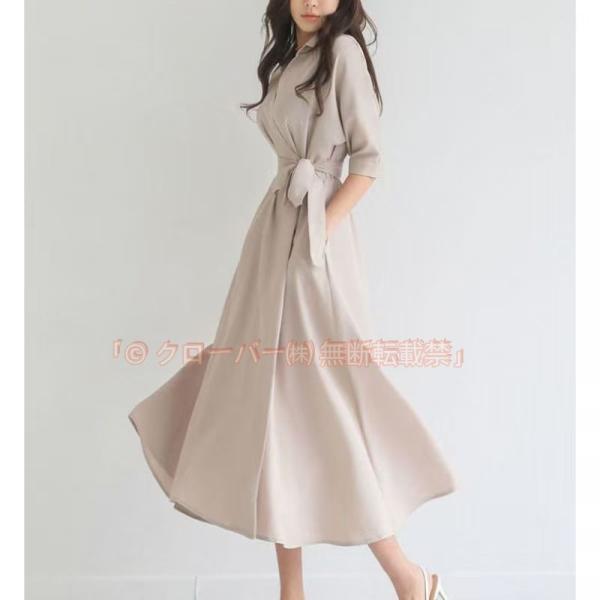 ワンピース 長袖 春秋 きれいめ シャツワンピース 無地 Vネック クローバー株式会社 Aライン 大きいサイズ ミモレ丈 ロング 着痩せ ゆったり