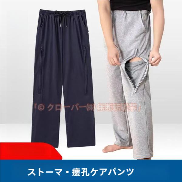 介護 ズボン 介護用パンツ 尿失禁 膀胱ろう サイドスリット ファスナー クローバー株式会社 採尿バッグ 収納 隠す 男女通用 綿 介護ズボン スウェットパンツ ロングパンツ ウエスト