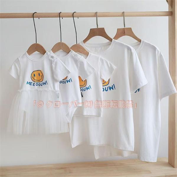 ベビー服 女の子 男の子 おしゃれ 兄弟 ペアルック お揃い クローバー株式会社 親子 ペアtシャツ ベビー 赤ちゃん 笑顔 プリント 半袖 ロンパース Tシャツ 親子ペアルック ベビー