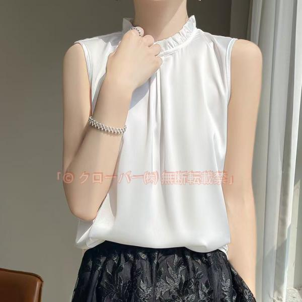 シルク タンクトップ レディース フリル襟 立ち襟 キャミソール 冷感 インナー トップス ノースリーブ シャツブラウス シルクサテン ショート丈 ブラ紐隠し アンダーウェア 薄手 上品 光沢感 吸湿 保湿 美肌 敏感肌 大人 普段着 春