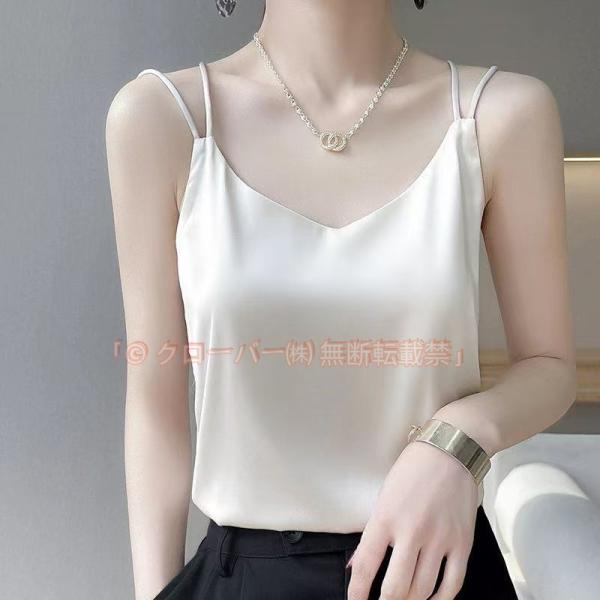キャミソール サテン 大きいサイズ レディース きれいめ サテン風 光沢 Vネック バッククロス 薄手 トップス ノースリーブ インナー 下着 レイヤード 重ね着 コーデ フォーマル エレガント 上品 オフィス 部屋着 薄手 白 黒 夏 春