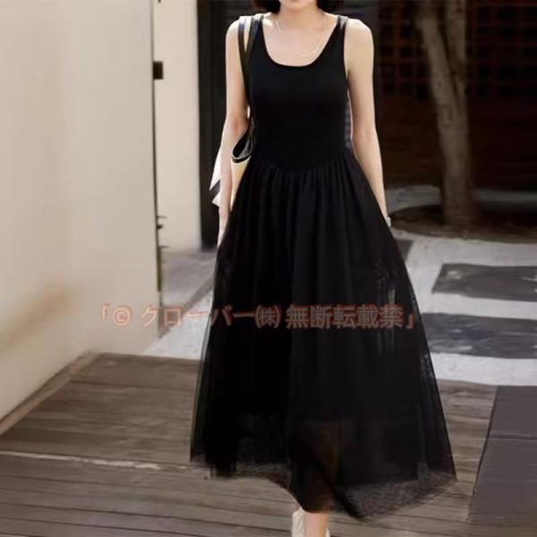 ワンピース レディース ロングワンピース キャミワンピース Uネック チュールスカート チュール クローバー株式会社 ワンピ 春 夏 ノースリーブ タンクトップワンピース インナー