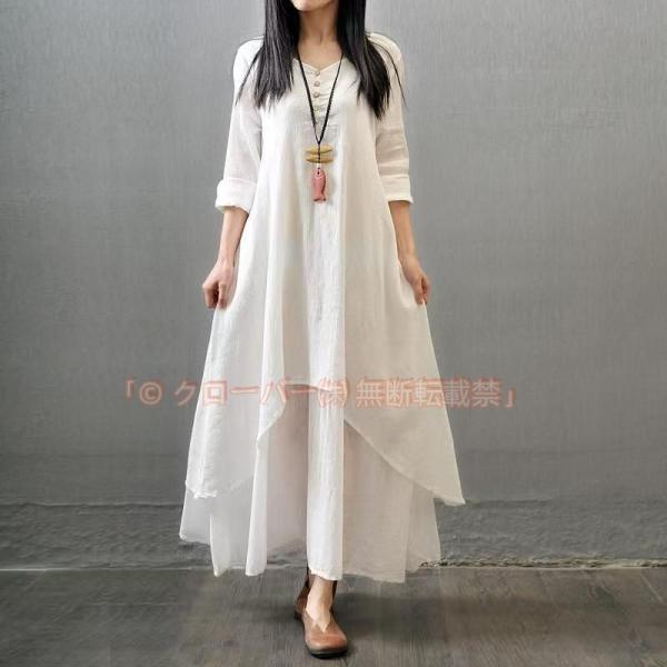 ワンピース 長袖 レディース ロング ミモレ ゆったり カジュアル クローバー株式会社 切り替え 接触冷感 着痩せ フランス風 綿麻 きれいめ おしゃれ 送料無料