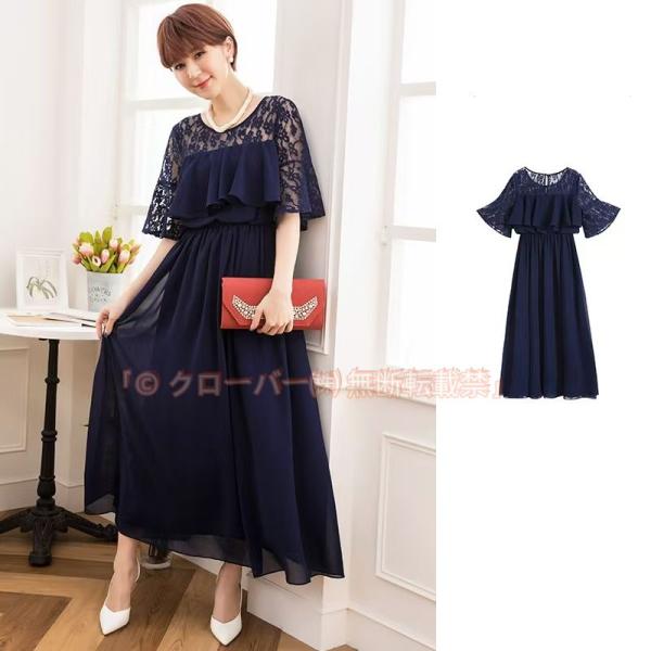 【訳あり】パーティードレスドレス結婚式ワンピースAラインフォーマル袖あり同窓会謝恩会大きいサイズ成人式二次会ロング披露宴レース クローバー株式会社
