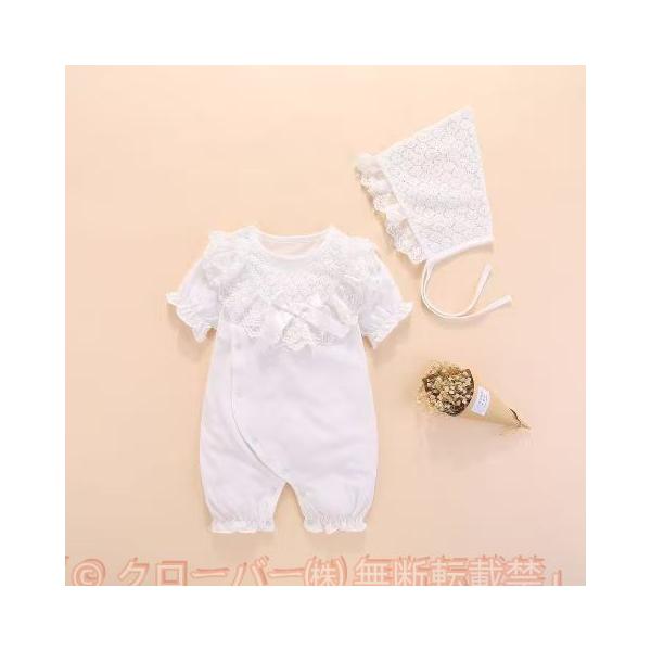ロンパースカバーオールベビー子供服赤ちゃん新生児セレモニードレス半袖女の子帽子付き2点セットレースフリルリボンかわいい クローバー株式会社