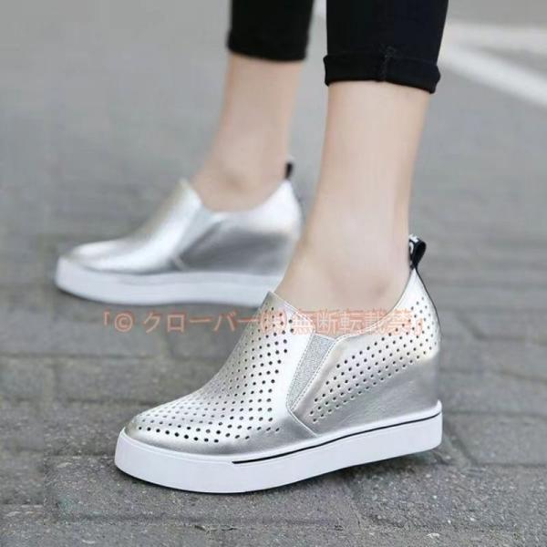 スニーカー インヒールスニーカー レザー調 痛くない レディース 走れる 蒸れにくい クローバー株式会社 厚底スニーカー ウェッジソール スリッポン インヒールスリッポン