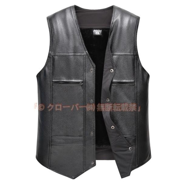 レザーベスト メンズ 裏起毛ベスト 合皮 Vネック ビジネス オフィス クローバー株式会社 厚手 ノースリーブ 前開き アウトドア 防寒 暖かい 通勤 通学 無地