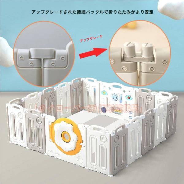 サイズ:外寸:幅170×奥行170×高さ60cm、幅204×奥行204×高さ60cm(正方形の場合)対象年齢:0歳10ヶ月?素材:高密度ポリエチレンセット内容:ドアパネル×1、おもちゃパネル×1、パネル×16/20カラー:ピンク、グレー、ブラウン ?2色使いがおしゃれなベビーサークル?必要な時だけサッと取り出せる 折りたたみ式?楽しく遊べるおもちゃパネル?工具不要で設置簡単!ジョイント式?お部屋に合わせた形にレイアウトOK?ズレを防止する滑り止め付?安心のロック付きドア?やさしい丸角設計?届いてすぐに使える完成品 ※パネルの結合角度は30度/60度/90度/120度/180度です。※素材の性質上、気温が低い時期はパネルのジョイントが硬くなることがございます。室温20度以上のお部屋で半日ほど置いて頂くと、ジョイントしやすくなります。