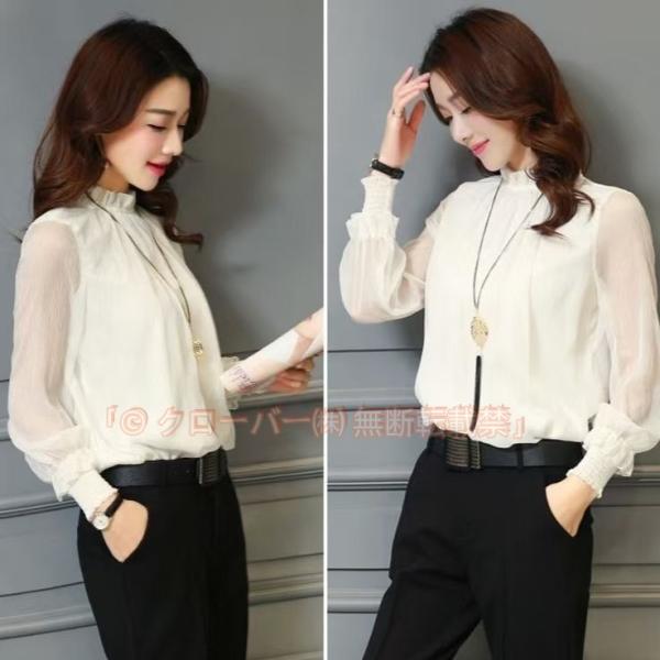 ブラウス 長袖 シャツ レディース レース 黒 白トップス クローバー株式会社 チュールブラウス 袖レース 透け感 カジュアル春 夏