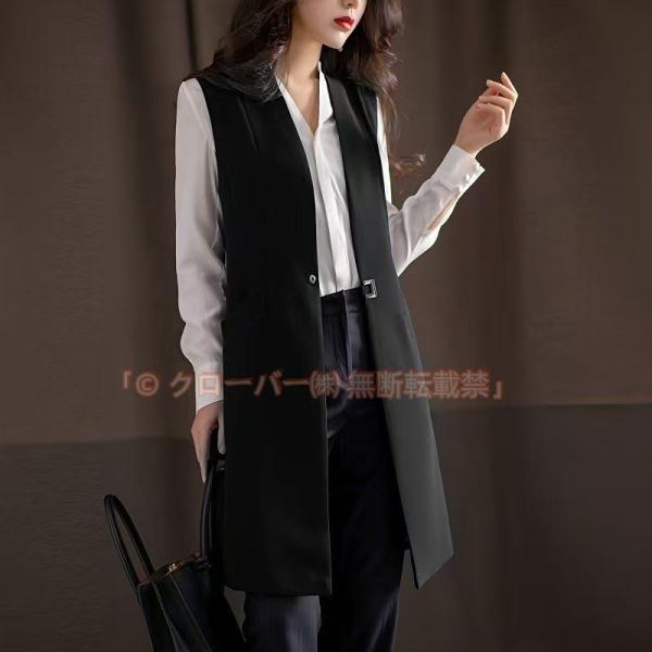 テーラード レディース ジレベスト 着痩せ チュニック シンプル Vネック クローバー株式会社 ロングベスト 無地 ポケット付き ノースリーブ 前開きベスト