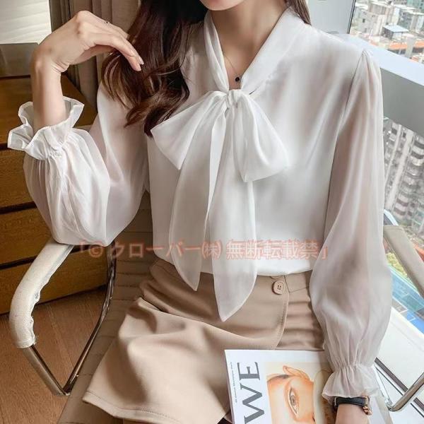 シフォン リボン付き 九分袖 ブラウス リボンタイ ボウタイ レディース クローバー株式会社 白 フォーマル スーツ 演奏会 入学式 ママ スーツ インナー ブラウス おしゃれ 可愛