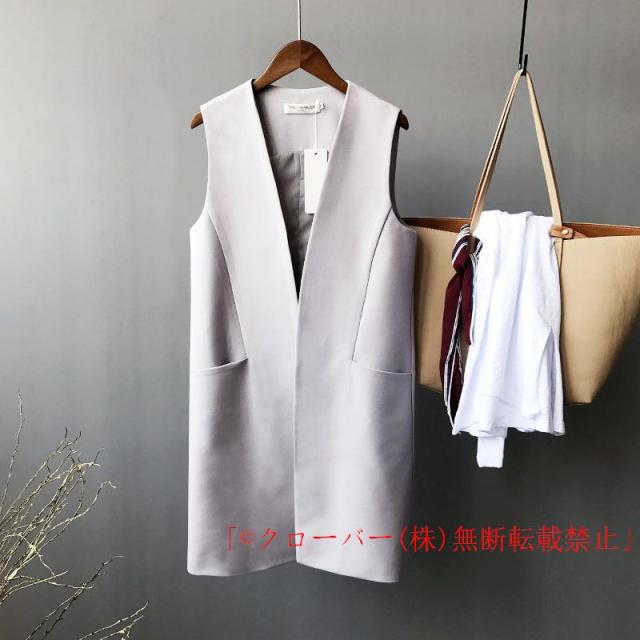 スーツベスト ジレ レディース 春秋 ロング 前開き オフィス クローバー株式会社 ノースリーブ 通勤 アウター コーデ トップス 重ね着 羽織り 30代40代50代