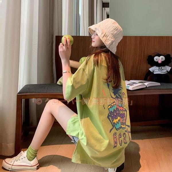 バックプリントTシャツ レディース オーバーサイズ カットソー オルチャン 韓国風 ロングtシャツ ビッグシルエット 白