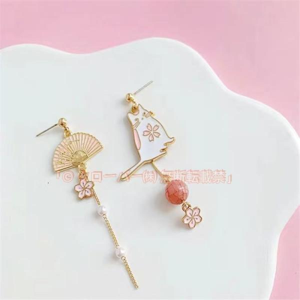 ピアス イヤリング ピンク 花 猫 フラワー ねこ クローバー株式会社 桜 さくら 可愛い ロング 揺れる パール 天然石 和風 春 夏 プレゼント レディース 女性 女の子 ギフト