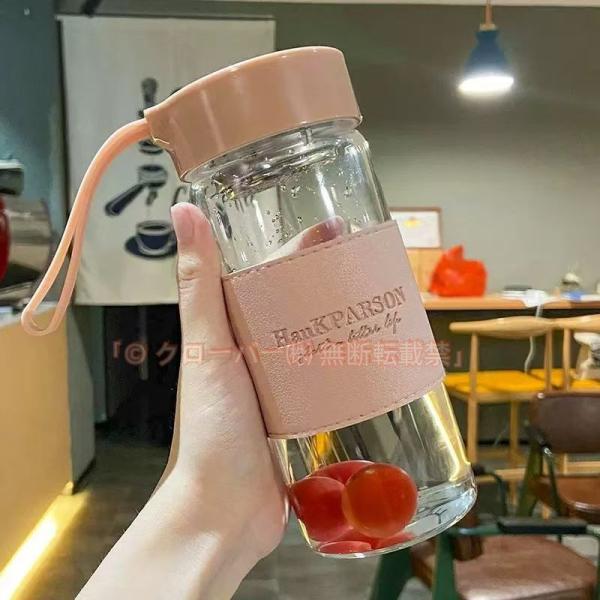 ??【デザイン】非常に透明なグラス水筒は、他のタイプのガラスよりよくきれいです。残りの水量も目で分かります。簡単に洗うと、綺麗になります。水筒 直飲み 子供 スポーツボトル 耐冷耐熱 漏れ防止 携帯便利