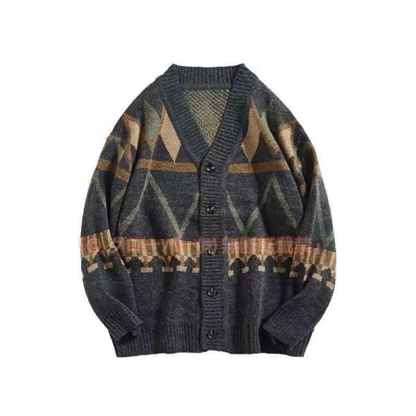 ニット カーディガン メンズ アウター 民族風 チェック柄 洗える クローバー株式会社 羽織 無地 セーター Vネック 秋冬 ウォッシャブル 防寒 おしゃれ