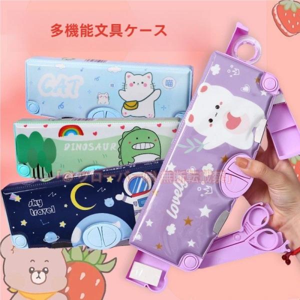 ペンケース 筆箱 大容量 多機能 小物入れ 鉛筆削り付 ふでばこ クローバー株式会社 小学生 男の子 女の子 ハサミ付 消しゴム付 物差し付き テープ収納リング 筆入れ 時間割表 マグネ