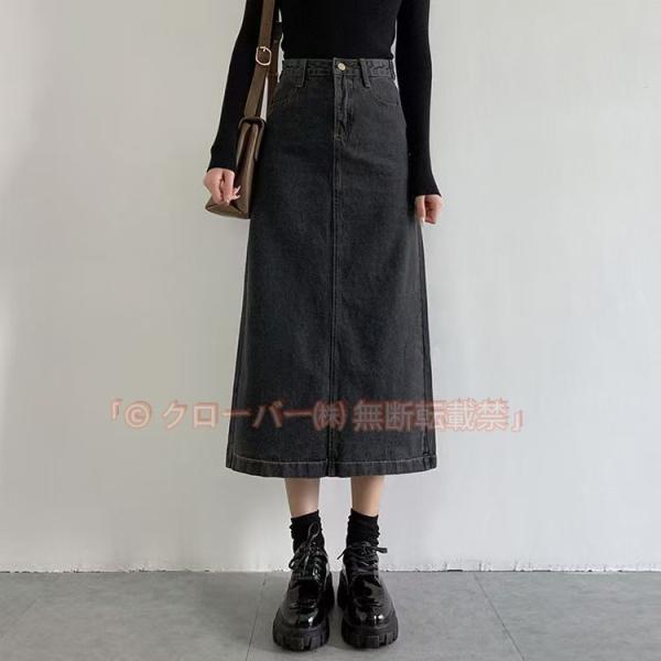 デニムスカート レディース ロングスカート タイトスカート 膝丈 ミモレ丈 大きいサイズ クローバー株式会社 無地 シンプル スリット ハイウエスト 美脚 20代 30代 40代 春夏秋冬