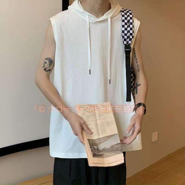 セール タンクトップ メンズ フード付き ノースリーブ パーカー パーカー クローバー株式会社 tシャツ 無地 トップス 重ね着 スウェット 夏パーカー スポーツ