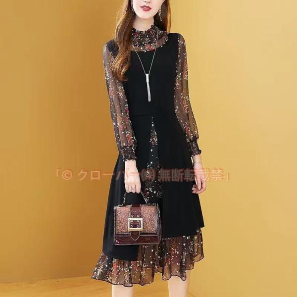 パーティードレス レディース ロングワンピース 長袖 きれいめ 上品 シフォンワンピース クローバー株式会社 ロング丈 花柄 大きいサイズ おしゃれ 韓国風 着痩せ OL