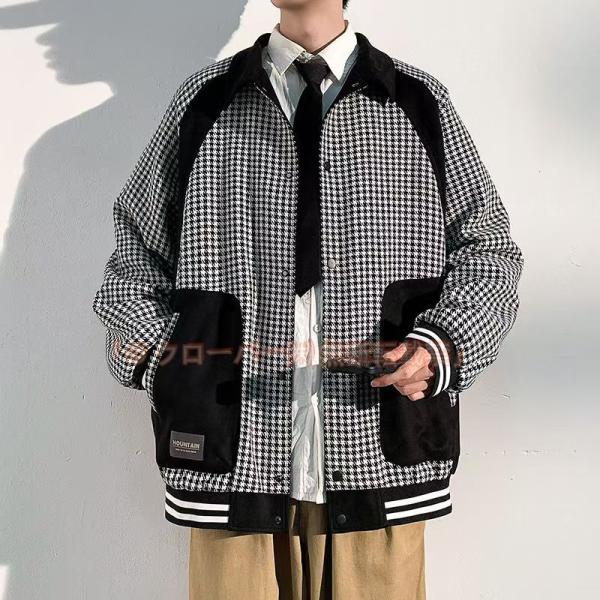 メンズ スタジャン 千鳥柄 おしゃれ ストリート Gジャン 野球服 クローバー株式会社 ユニセックス オーバーサイズ 防寒 防風 男女兼用 アウター