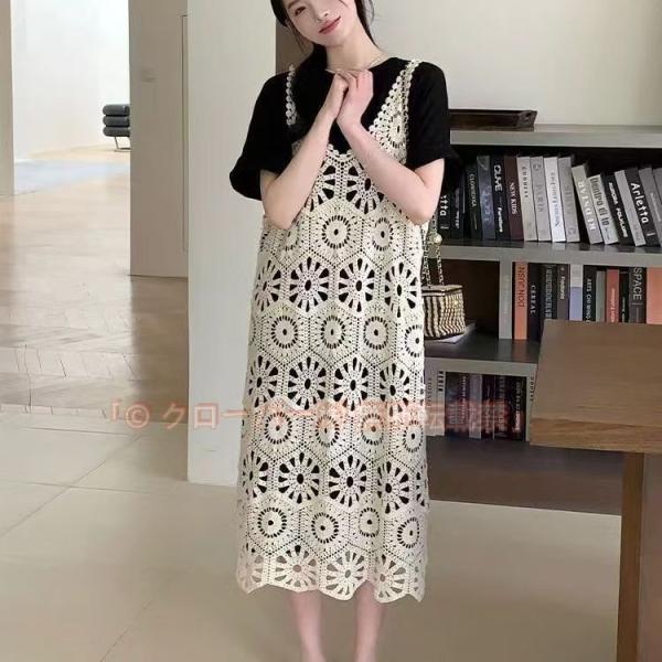 透かし編み ロングベスト レディース 夏ニットベスト カーディガン ジャンパースカート かぎ編み ロングニットベスト プルオーバー 綿 レースベスト クロシェ編みベスト レイヤード きれいめ ナチュラル 大人可愛い おしゃれ 森ガール