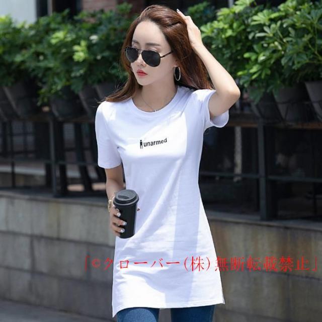 チュニック Tシャツ レディース 半袖 スリット入り トップス Uネック クローバー株式会社 ロング ゆったり カットソー 半袖Tシャツ 無地 夏 レイヤードトップス