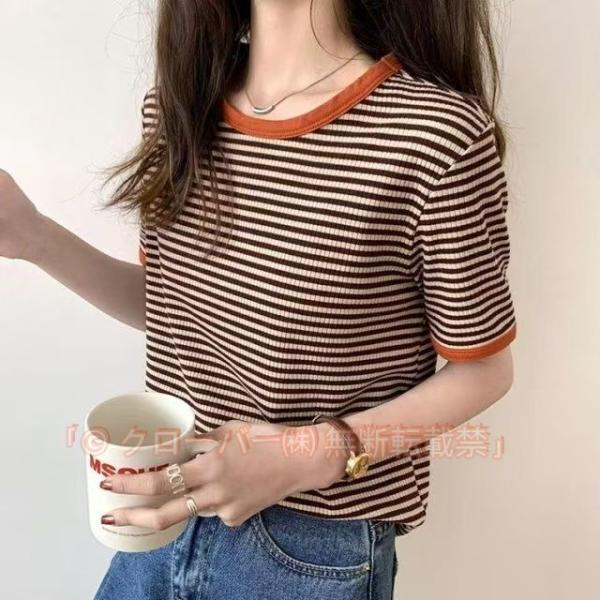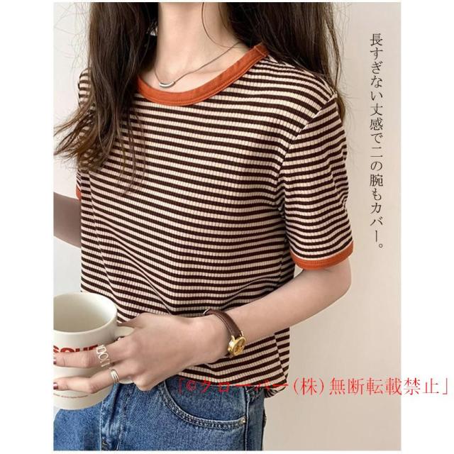ボーダーTシャツ クルーネック 細ボーダー 半袖 レディース カットソー 重ね着 クローバー株式会社 シンプル 春夏 カジュアル 大きいサイズ