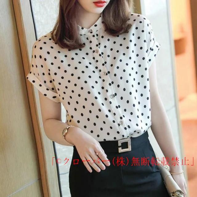 シャツブラウス レディース トップス シャツ 半そで 半袖 シフォンブラウス クローバー株式会社 水玉 ドット柄 ゆったりドット柄ブラウス 大人可愛い 春 夏 ドット柄 半袖ブラウス