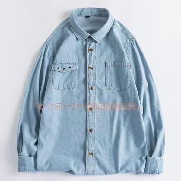 デニムシャツ メンズ 長袖 綿100% ゆったり 通学 学生 クローバー株式会社 紳士 カジュアル かっこいい プレゼント ギフト 紳士服 春夏 秋冬 おしゃれ シンプル