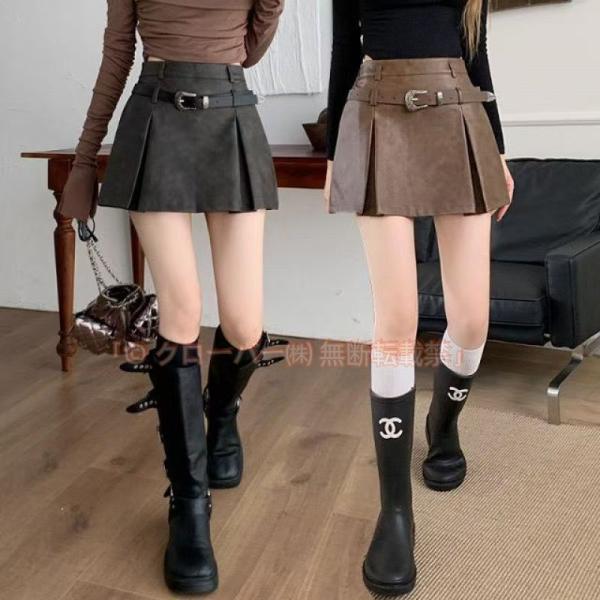 ミニスカート プリーツ レザー調 大人向き プリーツスカート Aライン ミニ丈 クローバー株式会社 スカート レザースカート 短い フレアミニスカート 大人カジュアル 大