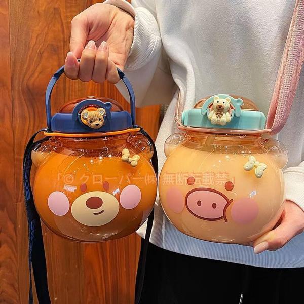 水筒 可愛い水筒 丸い水筒 動物 1430ML 大容量 夏 クローバー株式会社 可愛いクマ 熊 子供 大人